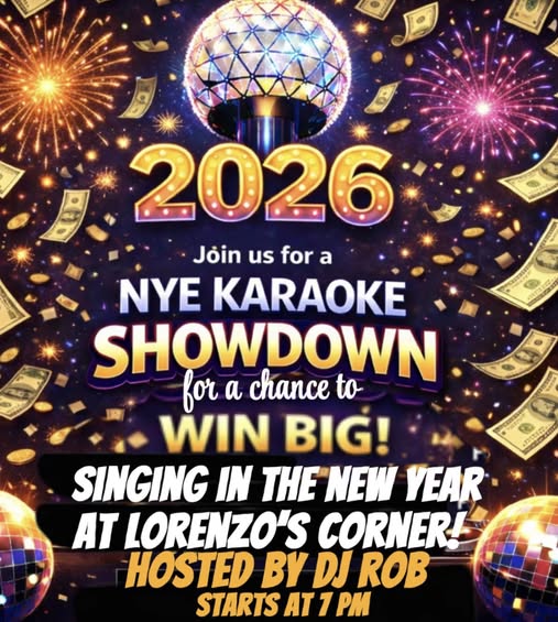 Ring in the New Year with high-energy karaoke, great food, and big prizes. Hosted by DJ Rob — starts at 7:00 PM.